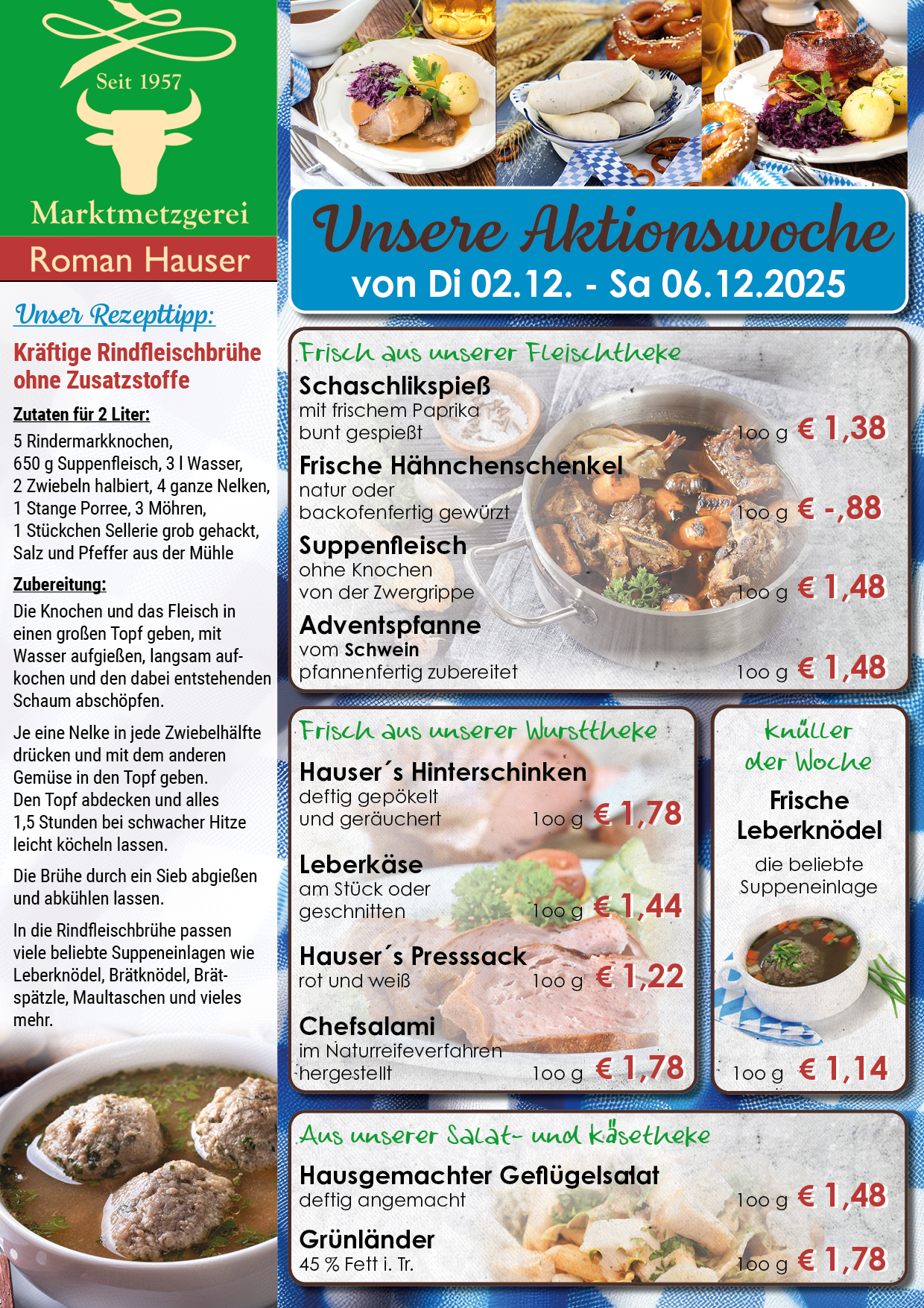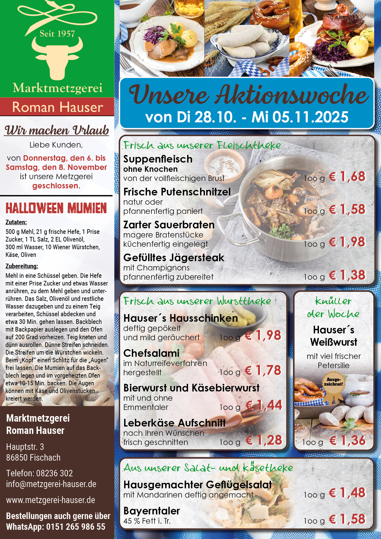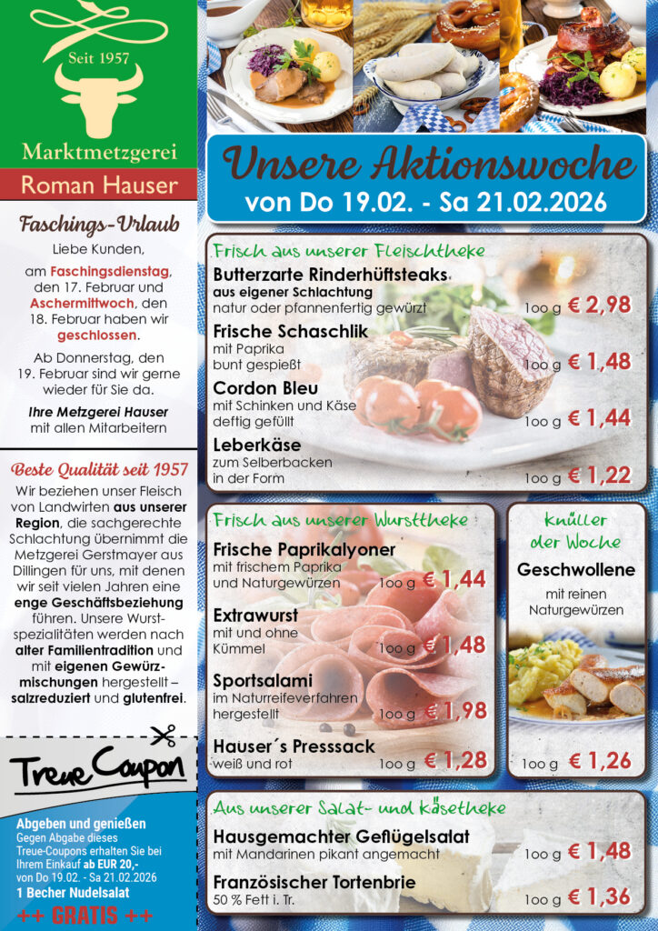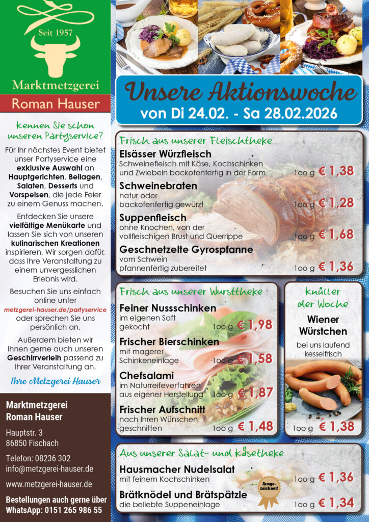 Online oder telefonisch bestellen und in der Metzgerei abholen!